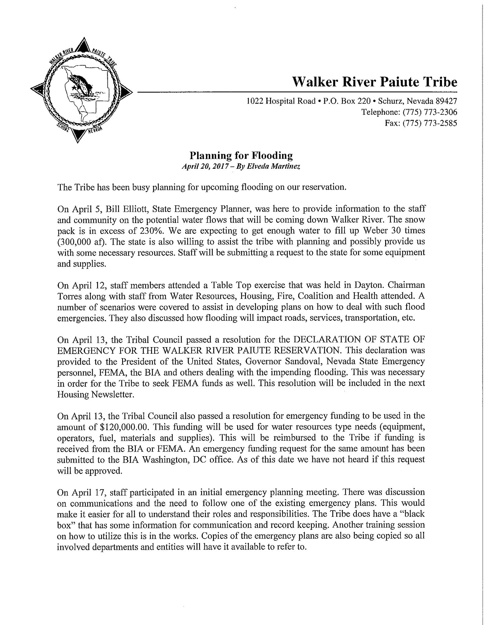 - Pyramid Lake Paiute Tribe Declaration of Disaster of Impending Flood